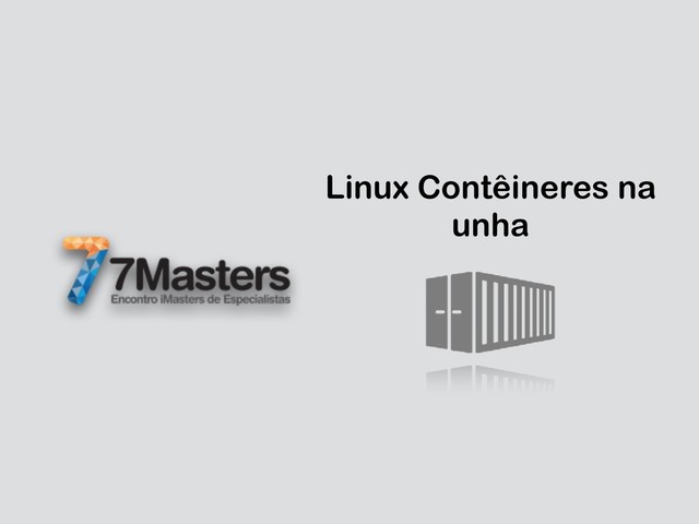 Palestra apresentada no dia 31 de maio de 2018 no evento 7Masters sobre containers em São Paulo. Mostramos rapidamente, afinal eram 7 minutos, um pouco do que são containers, histórico, diferenças dos tipos de virtualização e como que funciona o isolamento dos processos e os recursos utilizados para o tal. No final fizemos uma demonstração disponível em (https://github.com/wsilva/container-from-scratch-demo) montando contêineres usando Go lang