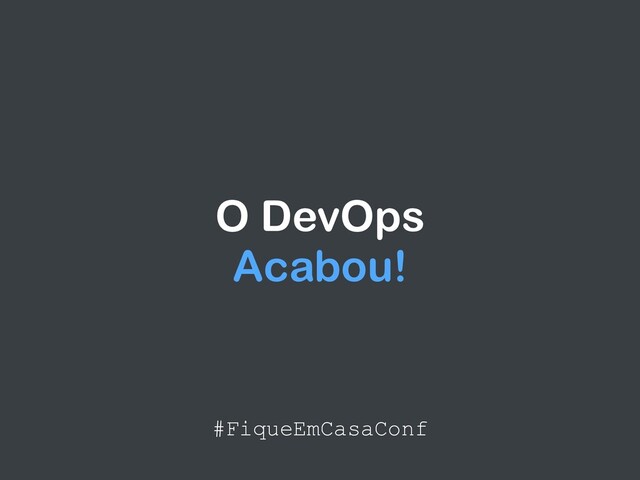 Palestra apresentada dia 20 de abril de 2020 no FiqueEmCasaConf - https://github.com/linuxtips/FiqueEmCasaConf. Conceituamos o que é o DevOps, como surgiu, características, as vantagens e dificuldades de implementar, erros e o que não é DevOps. Mostramos qual o DevOps que tem que ter vida longa e qual o DevOps que deveria acabar.