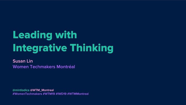 WTM19 - Why we should practice Integrative Thinking, the lesser known sibling of Design Thinking by Susan Lin