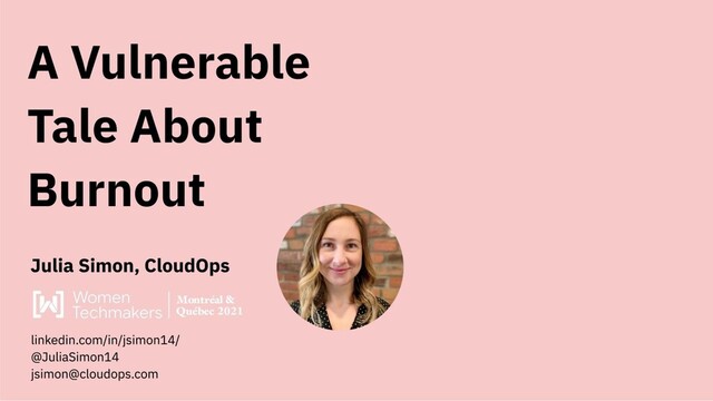 This talk is a vulnerable glimpse into my burnout experience: what led me there, and what helped me recover, and the impacts it had on my career. Spoiler alert: they have all been positive! The main goal is to normalize dialogue around burnout and mental health in tech and in the workplace.
