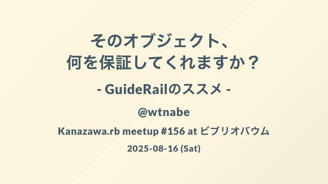 そのオブジェクト、 何を保証してくれますか? - GuideRail のススメ - @wtnabe Kanazawa.rb meetup #156