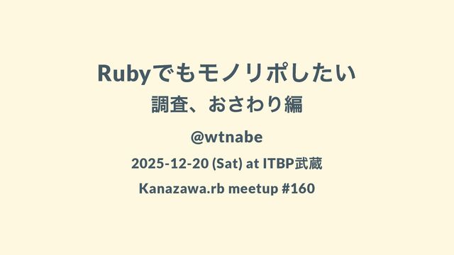 Ruby でもモノリポしたい 調査、おさわり編 @wtnabe 2025-12-20 (Sat) at ITBP 武蔵 Kanazawa.rb