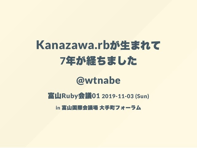 Kanazawa.rb 7 @wtnabe Ruby 01 2019-11-03 (Sun) in