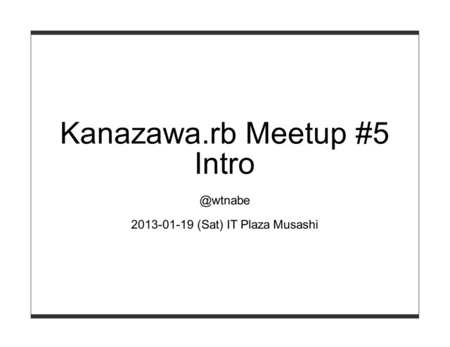 Kanazawa.rb Meetup #5 Intro @wtnabe 2013-01-19 (Sat) IT Plaza Musashi