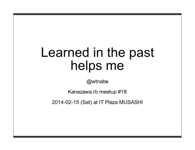 Learned in the past helps me @wtnabe Kanazawa.rb meetup #18