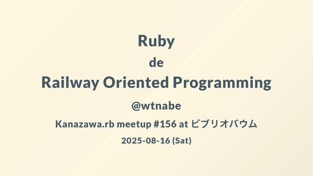 https://github.com/swlaschin/Railway-Oriented-Programming- Example Against Railway-Oriented Programming | F# for fun and profit Railway Oriented programming in Ruby: do notation vs dry- transaction | Igor Morozov dry-operation のススメとエラー情報をView まで持っていく方法の 模索 (2025-01-26) | あーありがち Result 型とRailway Oriented Programming をめぐる旅 (2025-02- 08) | あーありがち