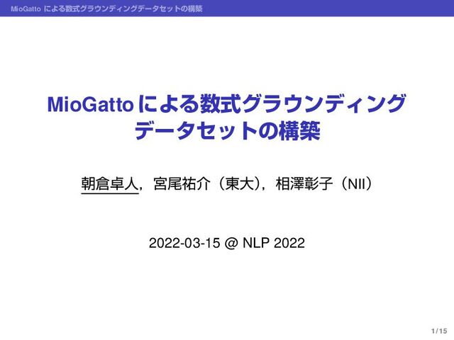 計算機を用いた科学技術文書の読解には,数式内の1つ1つの記号の意味をグラウンディングできることが重要である.現実の科学技術文書においては数式内の記号の意味は必ずしも一定ではなく,同じ 記号が複数の意味で用いられるため,グラウンディングの際には記号間の共参照関係も明らかにする必要がある.本研究では arXiv.org から選んだ15本の科学論文を対象に,数式内の記号の共参照関係を明示的にアノテーションしたコーパスの構築を行った.その結果,数式内の記号の曖昧性は狭い範囲に絞っても存在するほど複雑だが,共参照関係は高いアノテータ間一致率を保ちながらラベル付け可能であることが示された.