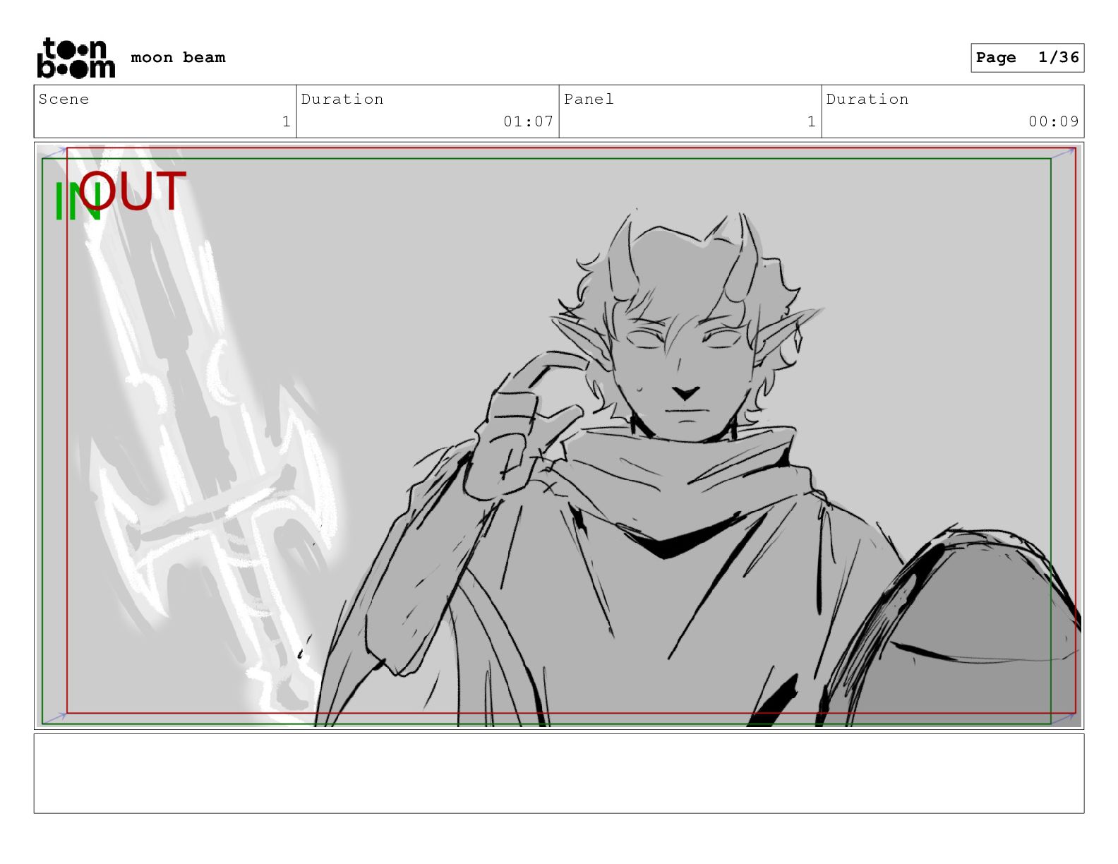 Scene 1 Duration 01:07 Panel 10 Duration 00:01 moon beam
