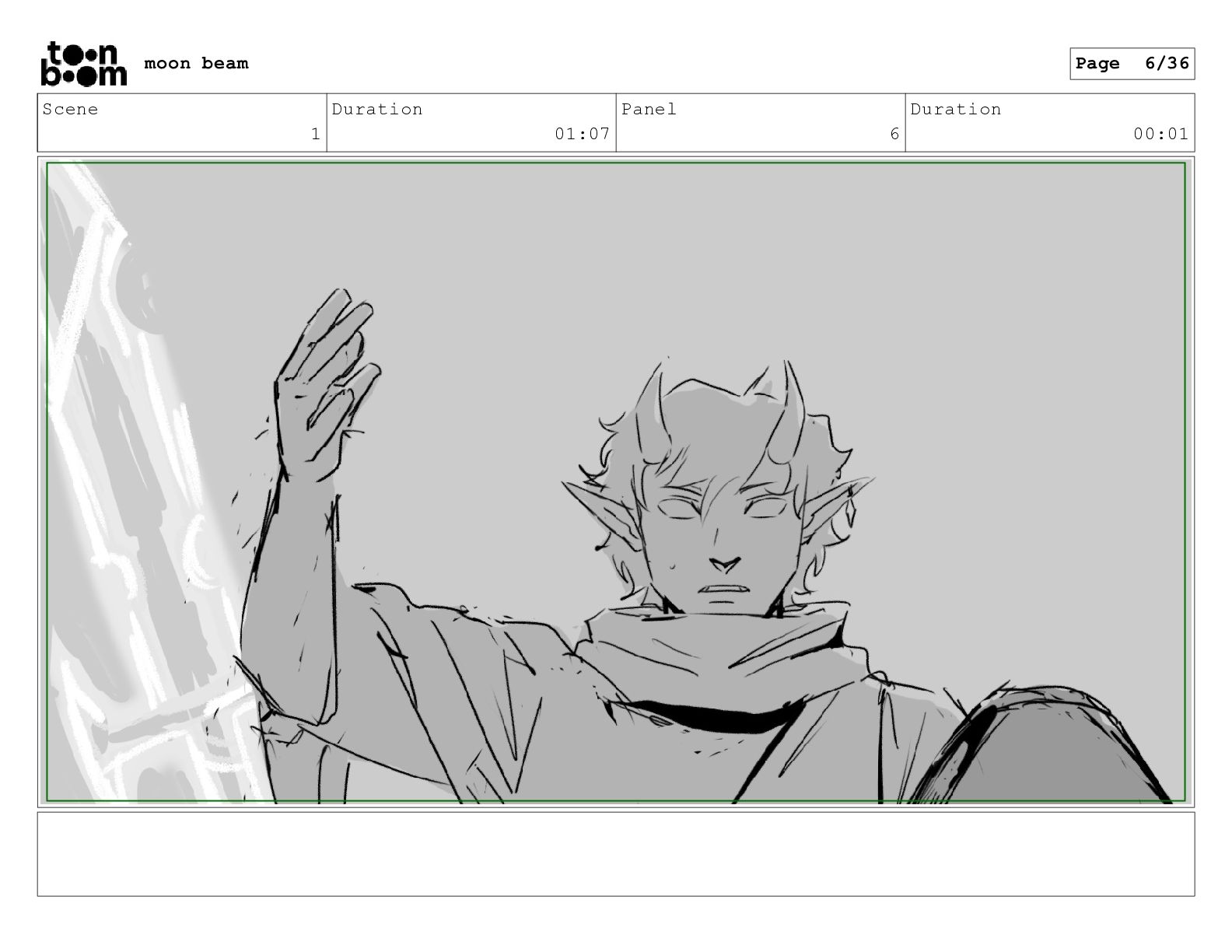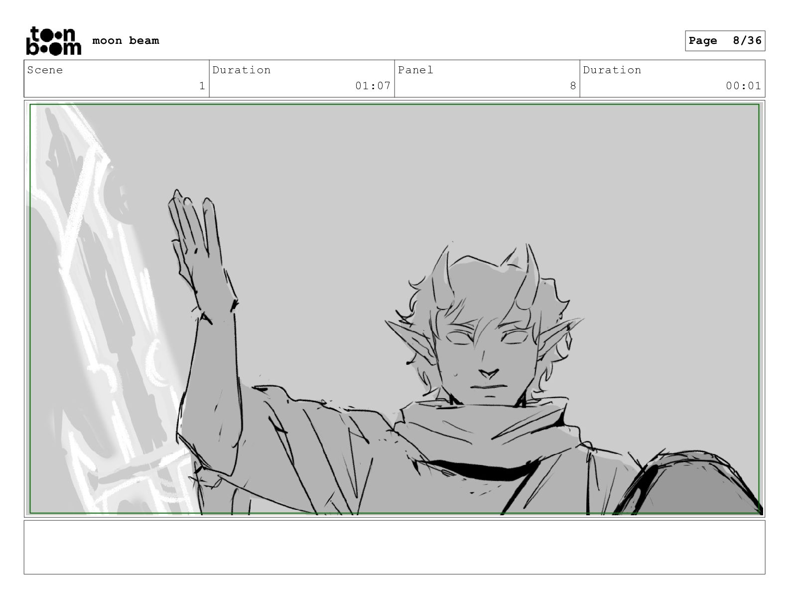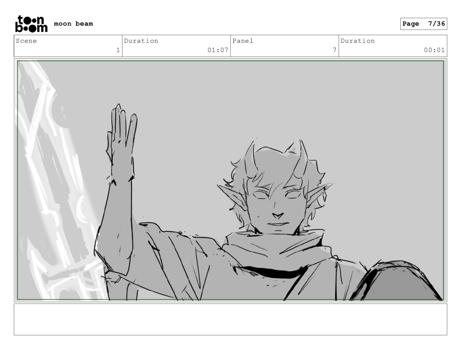 Scene 1 Duration 01:07 Panel 7 Duration 00:01 moon beam