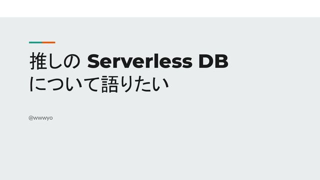 推しの Serverless DB について語りたい @wwwyo