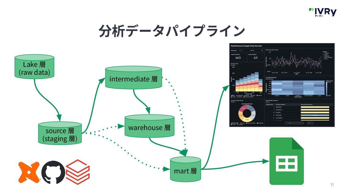 11 分析データパイプライン Lake 層 (raw data) source 層 (staging 層)