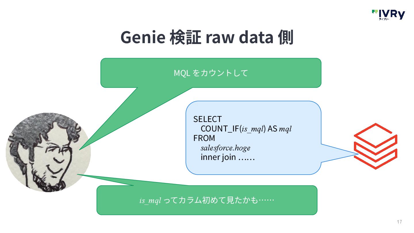 17 Genie 検証 raw data 側 MQL をカウントして SELECT COUNT_IF(is_mql)