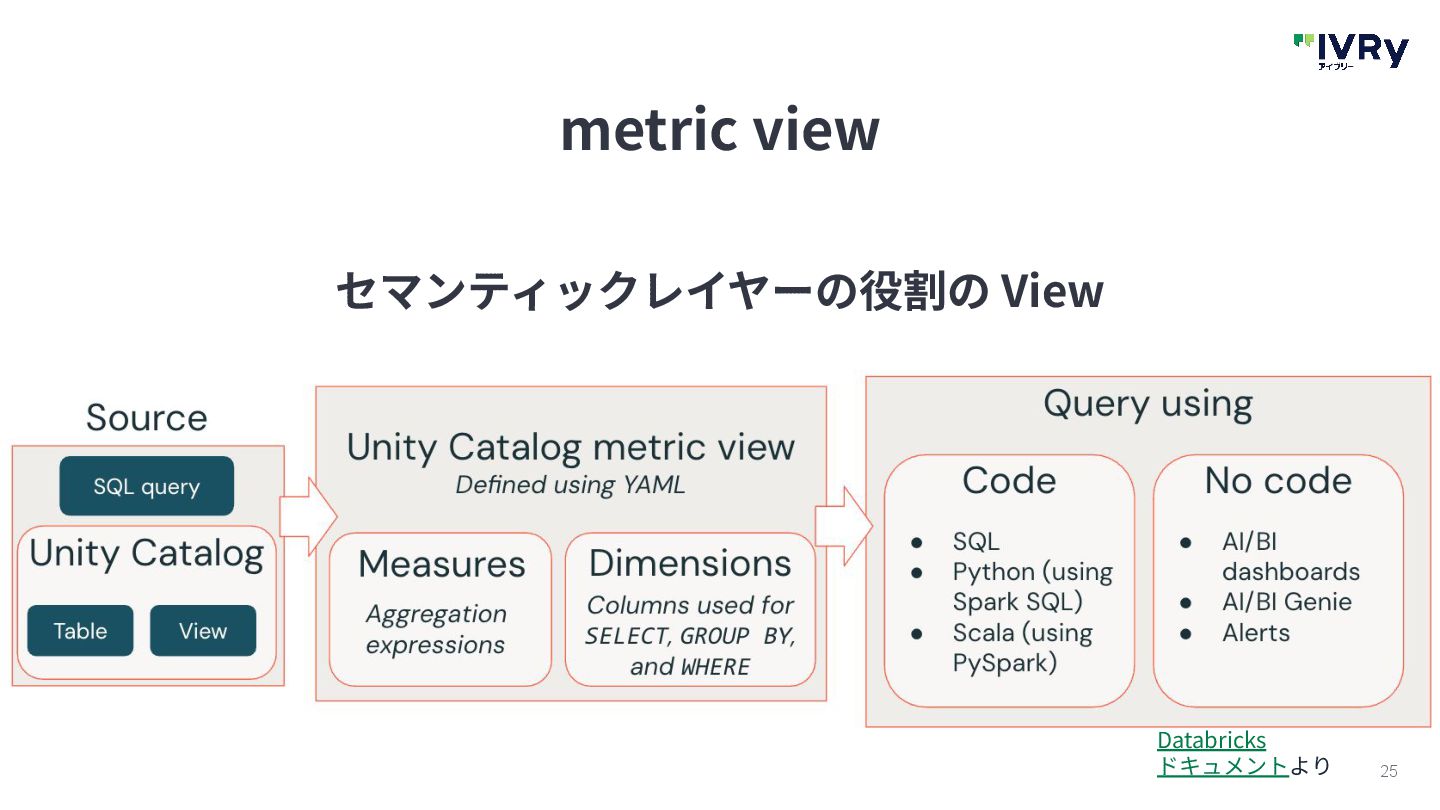 25 metric view セマンティックレイヤーの役割の View Databricks ドキュメントより