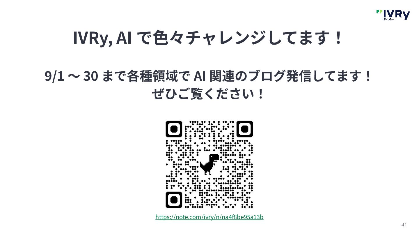 41 IVRy, AI で⾊々チャレンジしてます! 9/1 〜 30 まで各種領域で AI 関連のブログ発信してます!