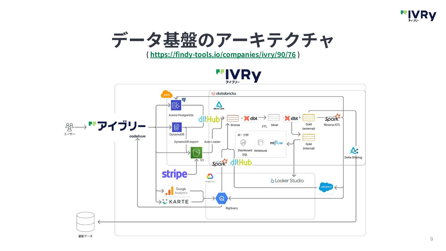 データ基盤のアーキテクチャ ( https://findy-tools.io/companies/ivry/90/76 ) 9