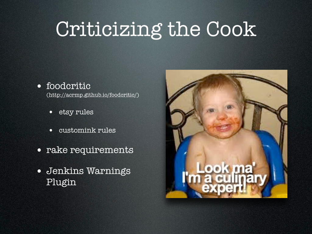 Criticizing the Cook • foodcritic (http://acrmp.github.io/foodcritic/) • etsy rules •