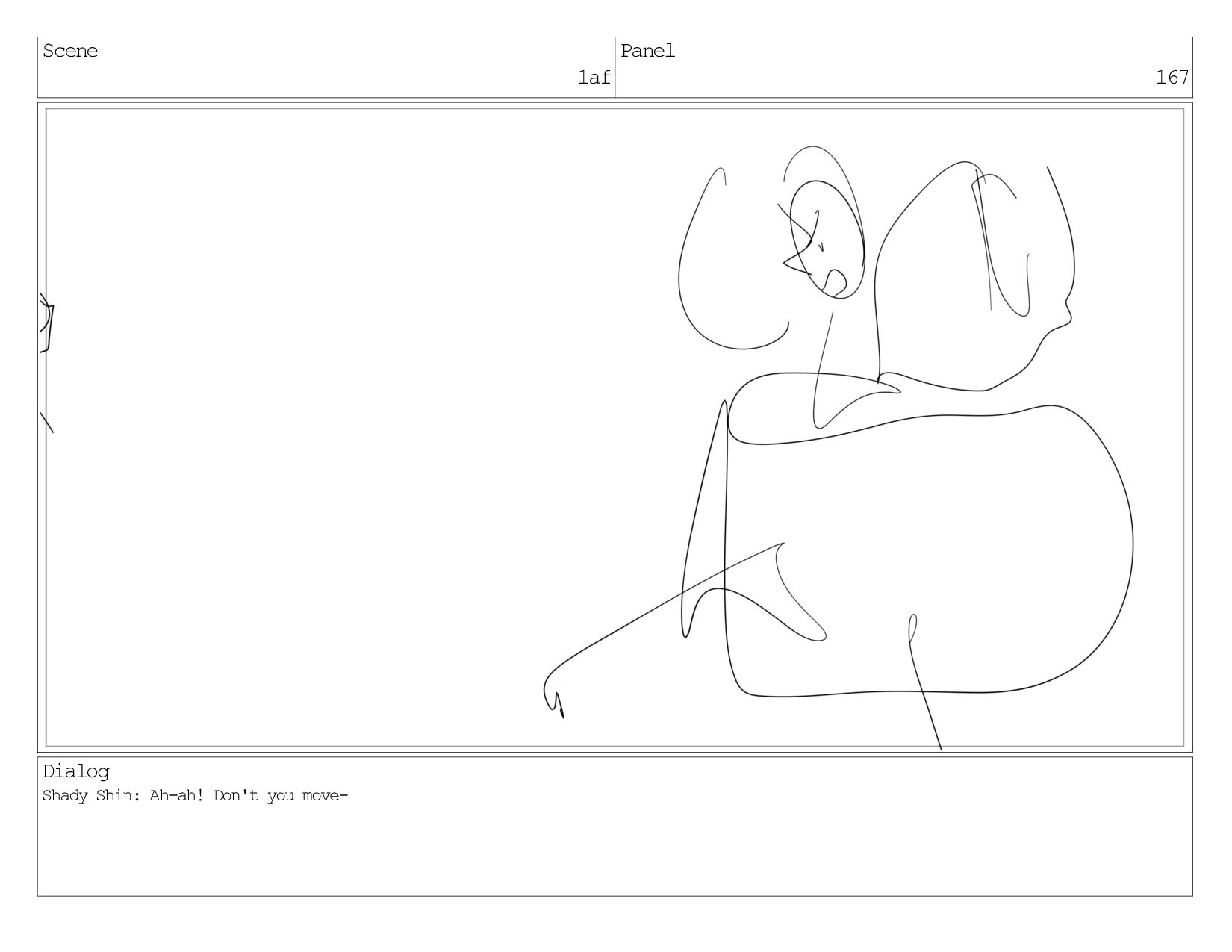 Scene 1af Panel 167 Dialog Shady Shin: Ah-ah! Don't you