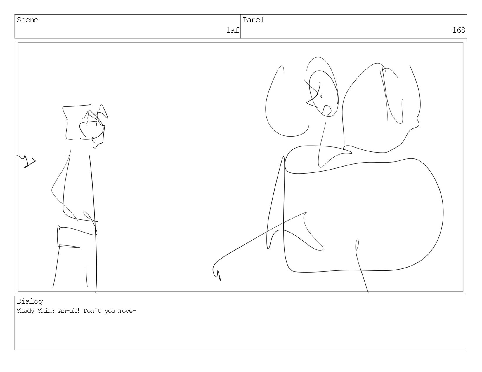 Scene 1af Panel 168 Dialog Shady Shin: Ah-ah! Don't you