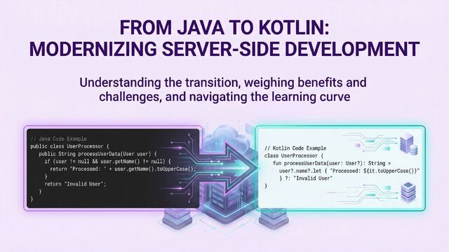 This presentation provides a comprehensive guide for migrating server-side applications from Java to Kotlin. It highlights Kotlin's key advantages, such as null safety, concise syntax, and efficient concurrency with coroutines, while emphasizing its 100% interoperability with Java. The slides offer a balanced comparison of benefits and drawbacks, along with a practical adoption roadmap tailored for both junior and senior developers to ensure a smooth and strategic transition.