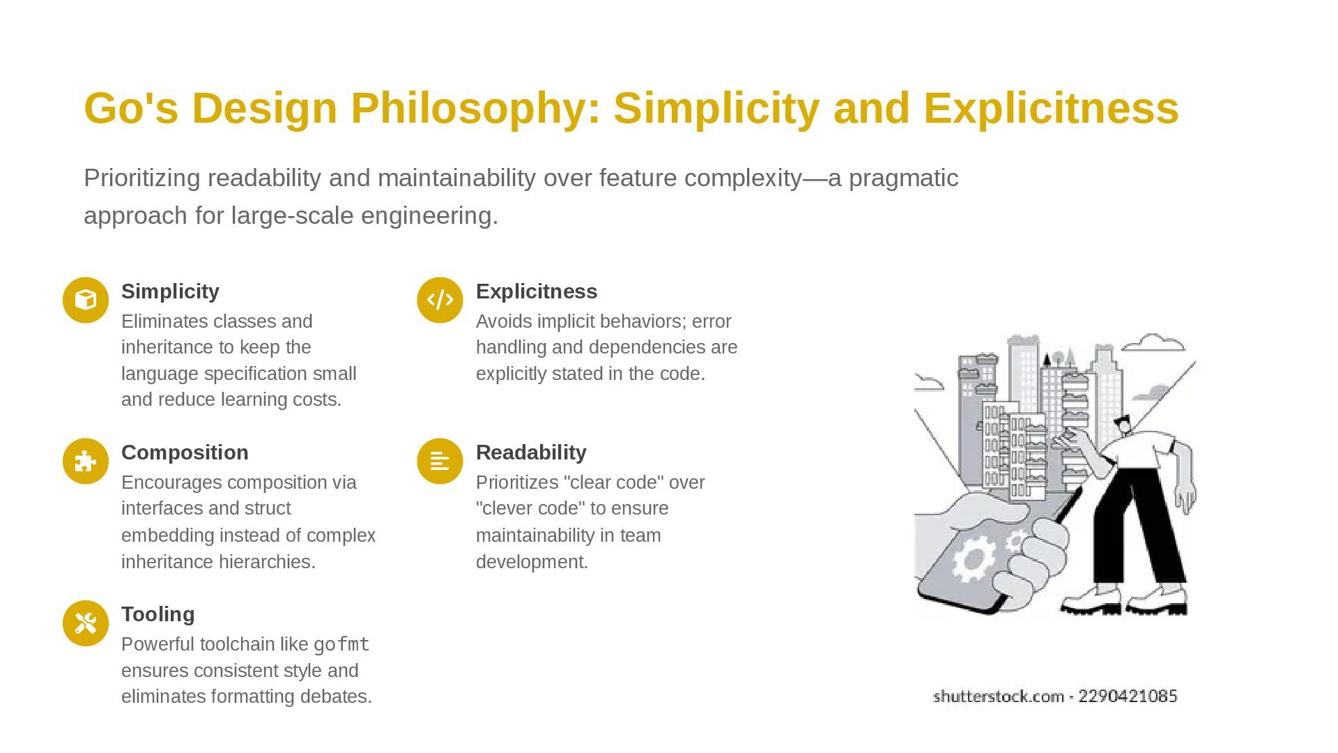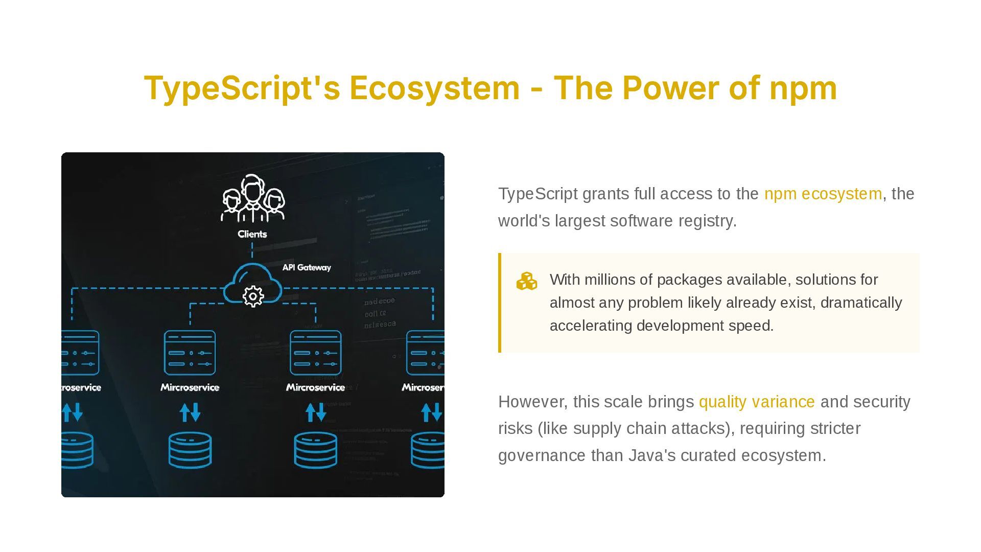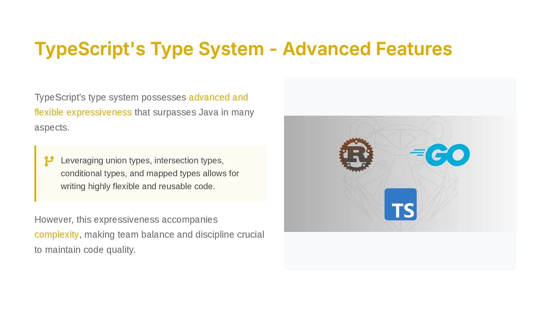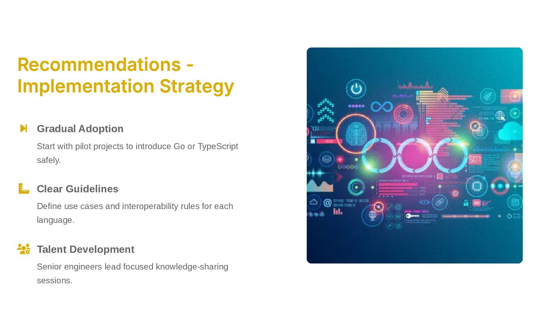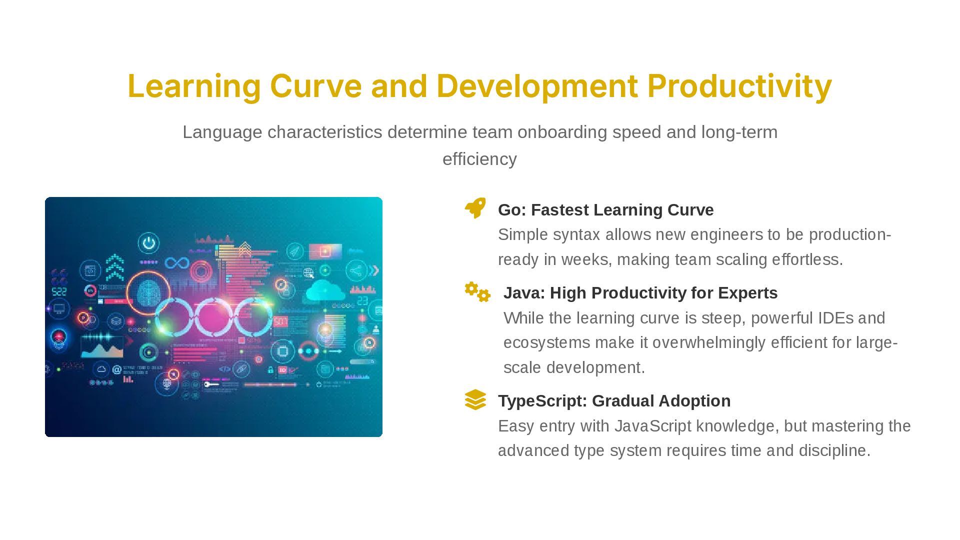 This presentation guides senior Java engineers in comparing Java, Go, and TypeScript for modern backend development. It analyzes Java's robust ecosystem, Go's concurrency and simplicity, and TypeScript's flexibility. By examining performance and use cases, it provides strategic insights for selecting the right language for enterprise, cloud-native, or rapid development scenarios.