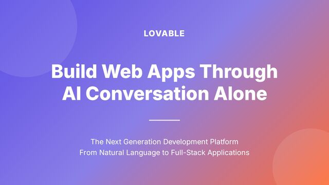 This slide deck presents Lovable, an AI-driven development platform that lets you build full-stack web apps through natural-language conversation, from specification to deployment. It explains the modern stack (React, TypeScript, Tailwind, Supabase) and two modes—Chat Mode for planning and Agent Mode for autonomous implementation. The slides showcase rapid prototyping, full SaaS launches, and real startup case studies, highlighting how Lovable compresses weeks of work into hours.