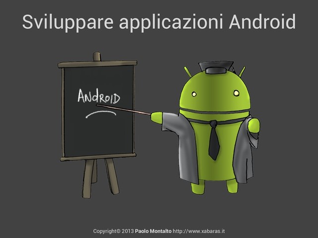 inizialmente su Kernel 2.6 • Supporto ARM (e successivamente x86) • Sviluppato separatamente • Aggiunte patch non presenti in main branch linux (ashmem, alarms, power management, low memory kliller, logger…) • Parziale integrazione in versione 3.3 La release 3.3 del kernel vi perme1erà di avviare un userspace Android senza alcuna modifica, sebbene la ges<one dell’alimentazione non sia molto buona. Nella versione 3.4 del kernel si spera di poter correggere questo problema e arrivare ad una piena integrazione con Android. Greg Kroah-‐Hartman (Linux kernel –stable branch maintainer)