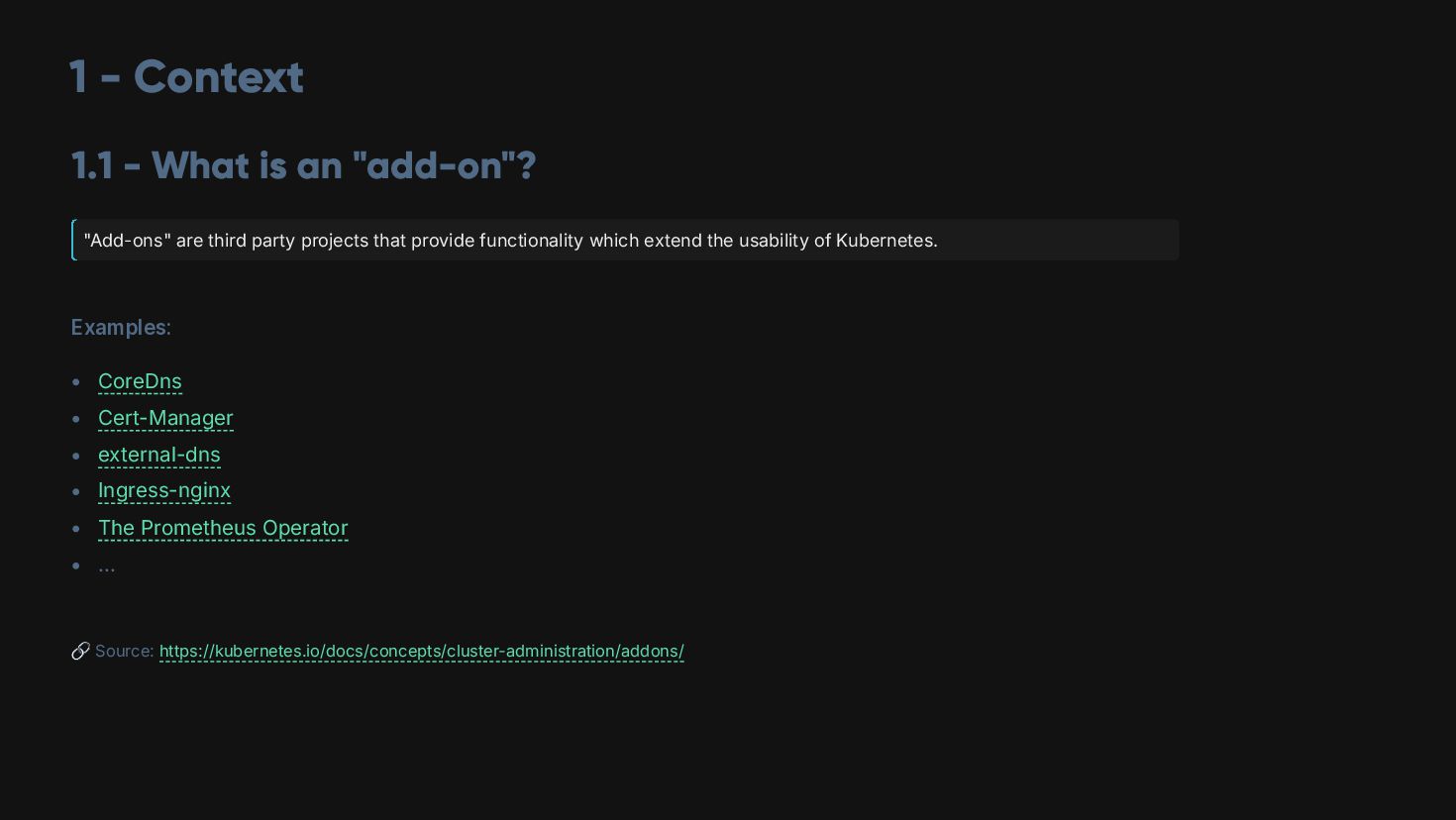 * You deploy add-ons, such as CNIs, Ingress Controllers, Operators, certificate management, etc. 🧱