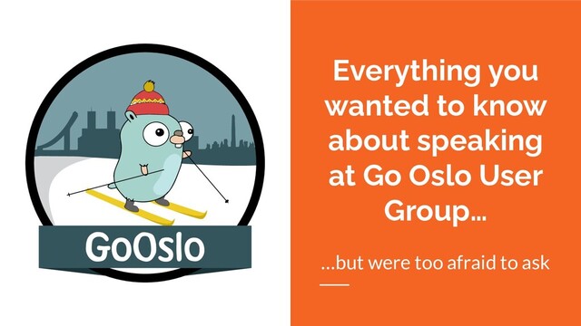 ideas! • a demo of something you built • a presentation of your project • how you use Go at work • an intro to a language concept • how you solved a problem • tips and tricks • a rant • a workshop • a Go package • a comparison of Go and another language • any non-technical topic that you think we’d benefit from