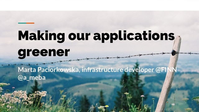 We live - and work - in an environmentally unbalanced system. In this talk, I’m hoping to make the audience more aware of the impact IT has on the environment, and leave them with tools that help positively lower this impact.