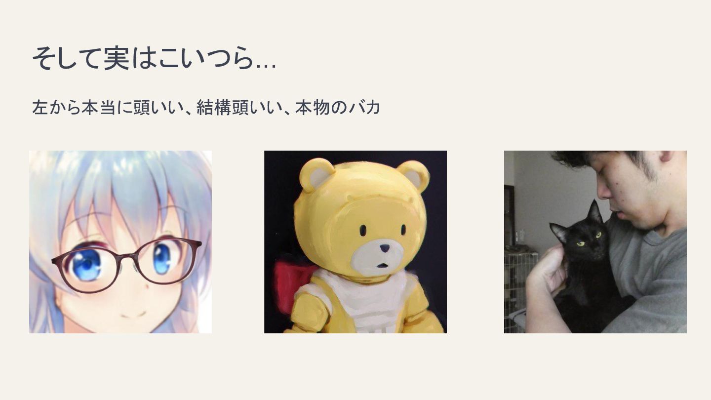 そして実はこいつら... 左から本当に頭いい、結構頭いい、本物のバカ