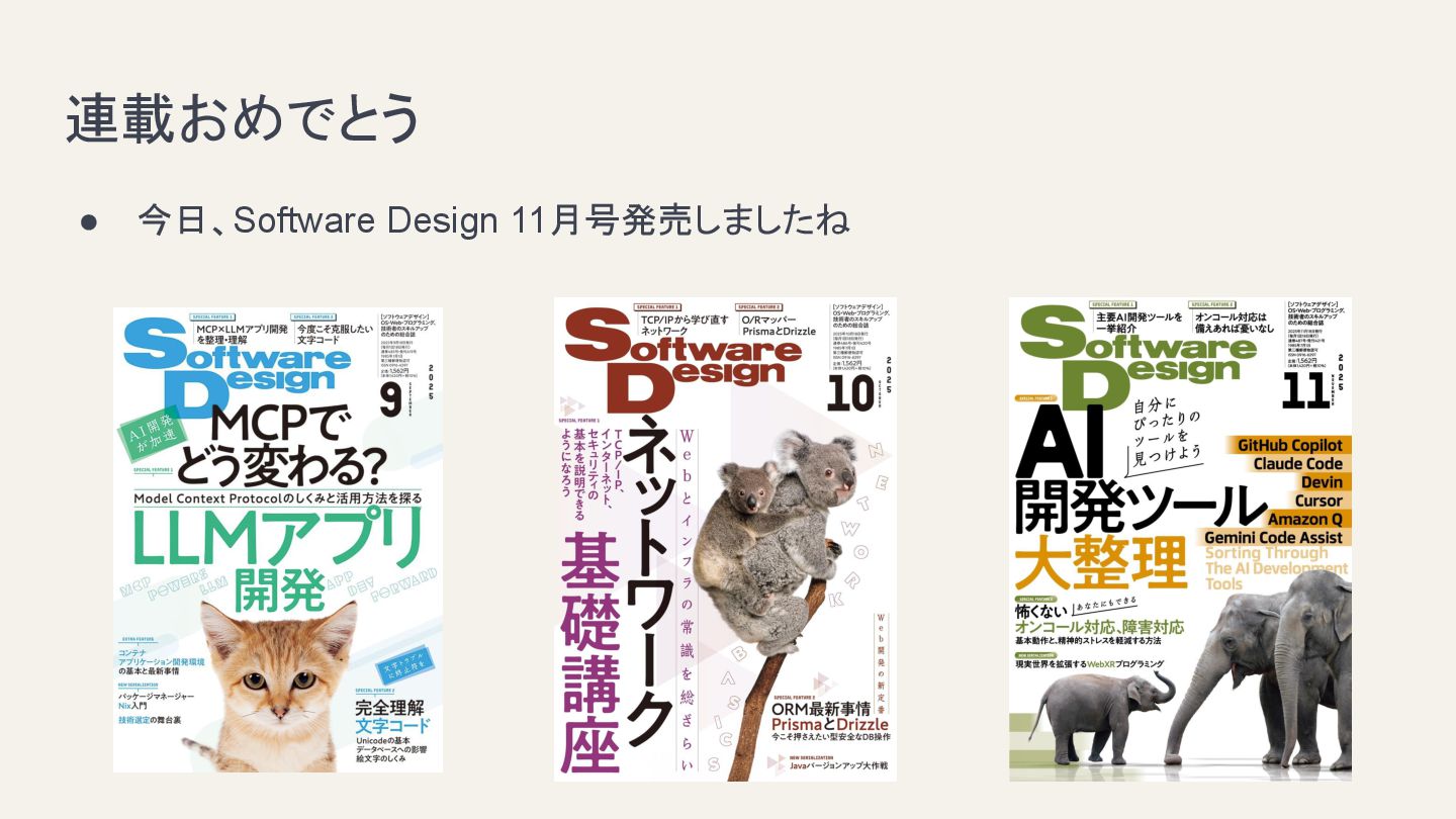 連載おめでとう • 今日、Software Design 11月号発売しましたね