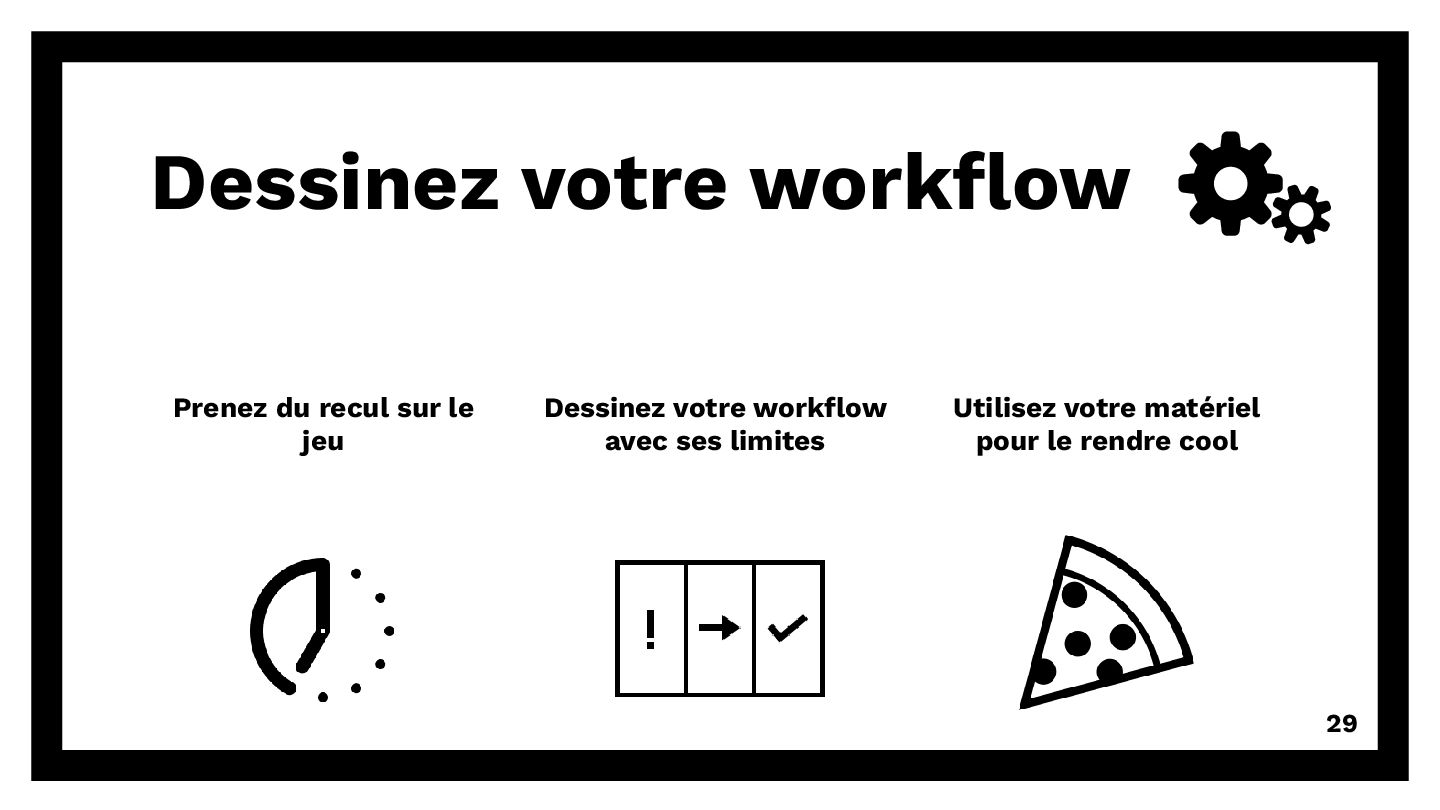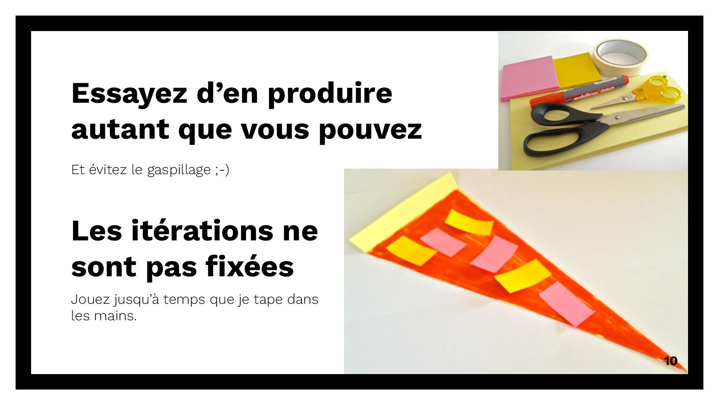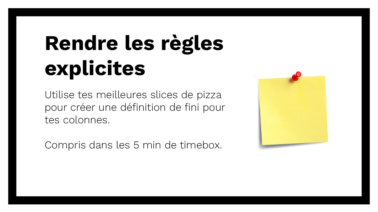 Faites une station pour chaque étape Limiter le travail en cours Où était le travail inachevé, empilé? Sélectionnez une WIP limit. Marquez vos stations d’une WIP limit. Mesurer et gérer le flux Normalement c’est le lead time. Nous, ce sera notre système de points. 14