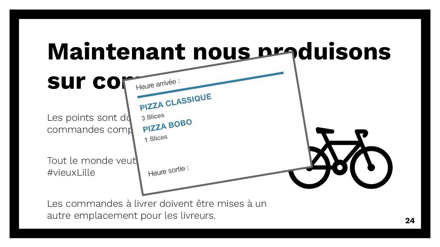 le monde veut goûter la pizza Bobo. #vieuxLille Les commandes à livrer doivent être mises à un autre emplacement pour les livreurs. Maintenant nous produisons sur commande 24