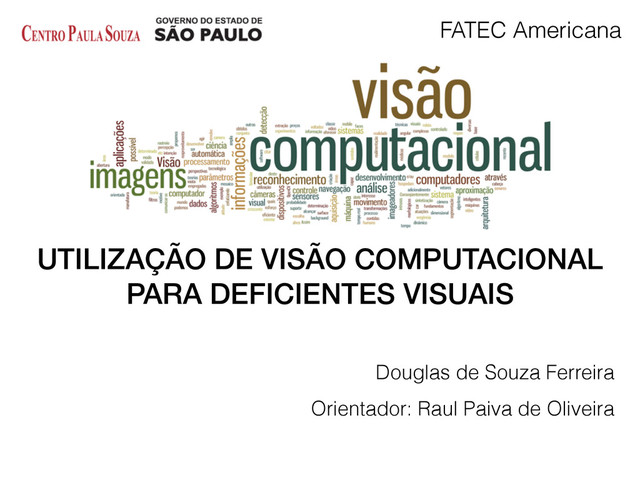 BRADISK, Gary; KAEHLER, Adrian. Learning OpenCV – Computer Vision With OpenCV Library. 1aed. O ́Reilly Media, 2008. IBGE, Instituto Brasileiro de Geografia e Estatística. Censo Demográfico 2010. Disponível em: <http://www.ibge.gov.br/home/estatistica/populacao/censo2010/ caracteristicas_religiao_deficienciadefault_caracteristicas_religiao_deficiencia.shtm>. Acesso em: 16 set. 2013. 20h. REN, Tsang I. Processamento de Imagem Morfológica. UFPE, 2010. Disponível em:<http:// www.cin.ufpe.br/~tir/ComputacaoCientifica/7.Morfologia%20Matematica.pdf>Acesso em: 17 mai. 2014. 10h. STEPHANIDIS, C. Adaptative Techniques for Universal Access in: User Modeling and User- Adapted Interaction. Kluwer Academic Publishers. 2001, p.159-179.