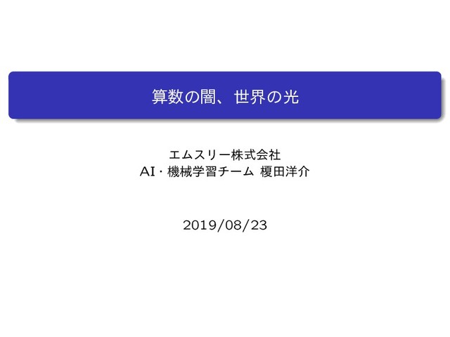 ࢉͷҋɺੈքͷޫ ΤϜεϦʔגࣜձࣾ AIɾػցֶशνʔϜ ӿా༸հ 2019/08/23