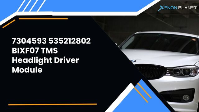 The 7304593 535212802 BIXF07 TMS Headlight Driver Module is a factory-fitted component for BMW 5 Series vehicles equipped with Xenon Headlights and D1S 35W gas discharge HID bulbs for the main beam, without adaptive lights. This module controls the halo rings, side/daytime lights, and front turn signal indicator lights.