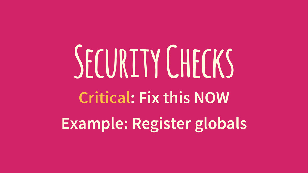 Security Checks Comment: Just mentioning it Example: Upload max filesize