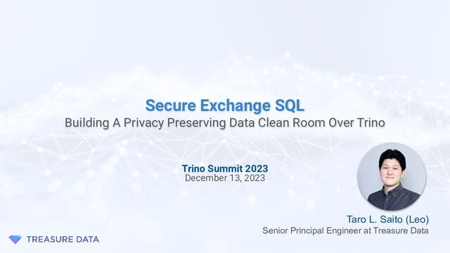 Secure Exchange SQL is a production data clean room service deployed at Treasure Data, which leverages Trino and differential privacy technology to enable cross-company data analysis while mitigating the risk of privacy breaches. In this session, we will introduce the concept of differential privacy and discuss the privacy protection methods that need to be implemented during SQL processing. To minimize changes to Trino's codebase, we employed approaches of SQL rewriting and validation at the logical plan level. We will explain these methods and provide practical use cases of our Data Clean Room.
