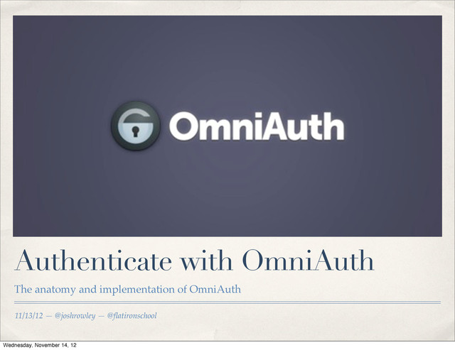 11/13/12 — @joshrowley — @flatironschool Authenticate with OmniAuth The anatomy