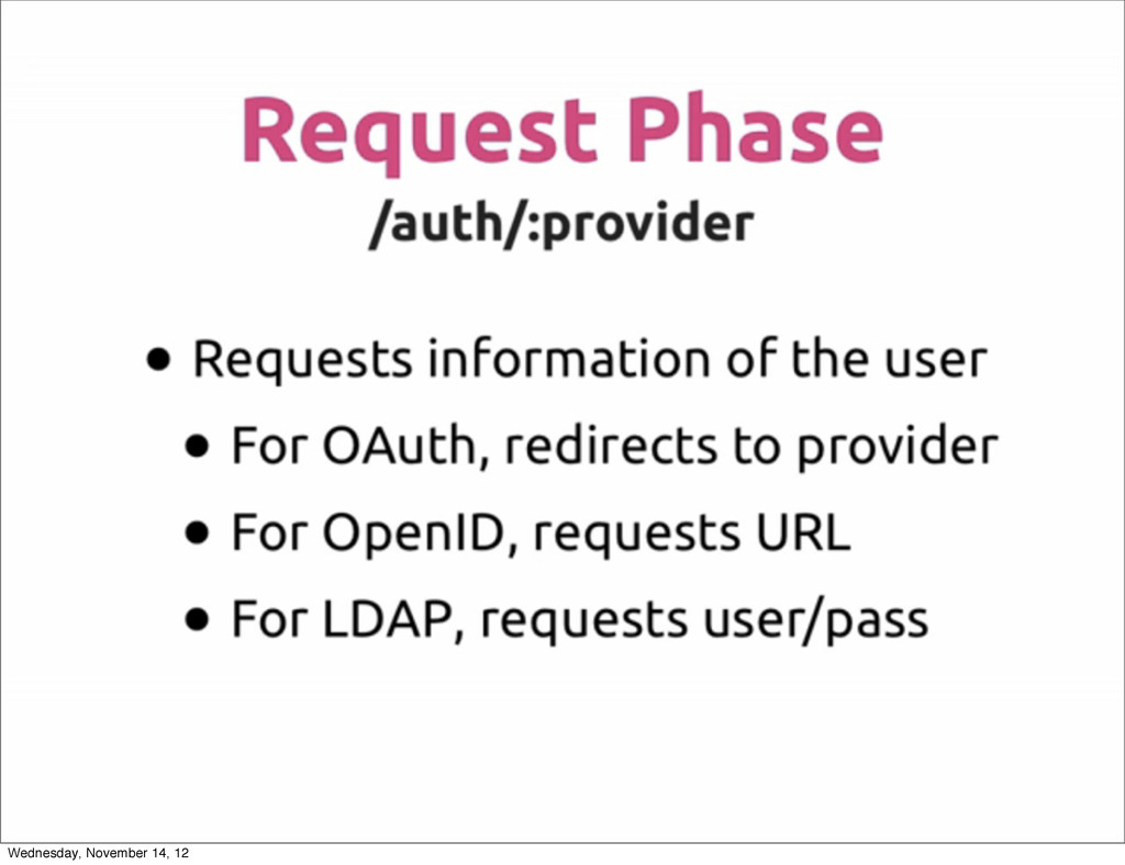 and implementation of OmniAuth Wednesday, November 14, 12