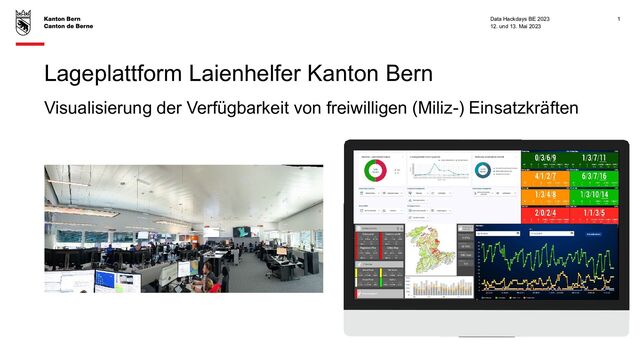 möglichen Lagevisualisierungssystems vorliegen. Es soll definiert sein, welche Daten für eine solche Lageplattform nötig wären und wie sie dargestellt werden könnten (Listen, Karten, Diagramm, etc.) Für die Lagedarstellung soll davon ausgegangen werden, dass es keine rechtlichen Hindernisse in Bezug auf Datenschutz, -speicherung und -zugang gibt. 12. und 13. Mai 2023 Data Hackdays BE 2023 5