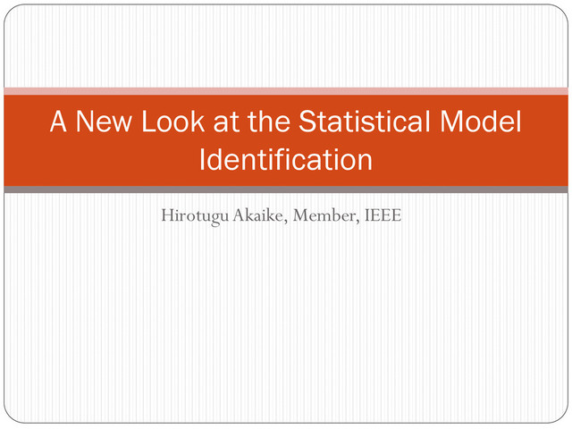 comme une méthode de construction de modèles statistiques ou identification Considéré doit être assez limité. la moyenne de log-vraisemblance semble être un choix naturel comme le critère de l'ajustement d'un modèle statistique . La procédure sur la base de l'AIC par MAICE qui est une estimation de la log-vraisemblance moyenne fourni une procédure polyvalente pour l'identification du modèle statistique