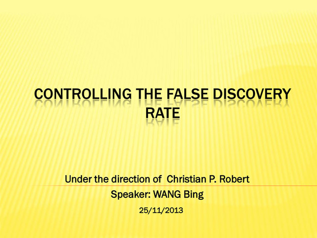 the relevant domain Development Definition of False Discovery Rate Two properties of false discovery rate False Discovery Rate Controlling Procedure Example of False Discovery Rate Controlling Procedure Conclusion