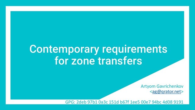 Contemporary requirements for zone transfers Artyom Gavrichenkov <
