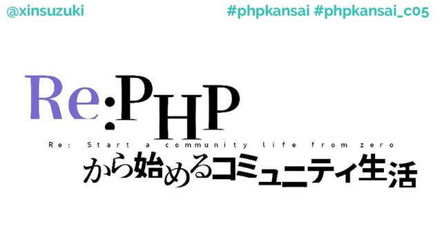 PHPカンファレンス関西2018でお話した「 Re:PHPから始めるコミュニティ生活」の登壇資料 https://2018.kphpug.jp/session/suzuki_shinichi