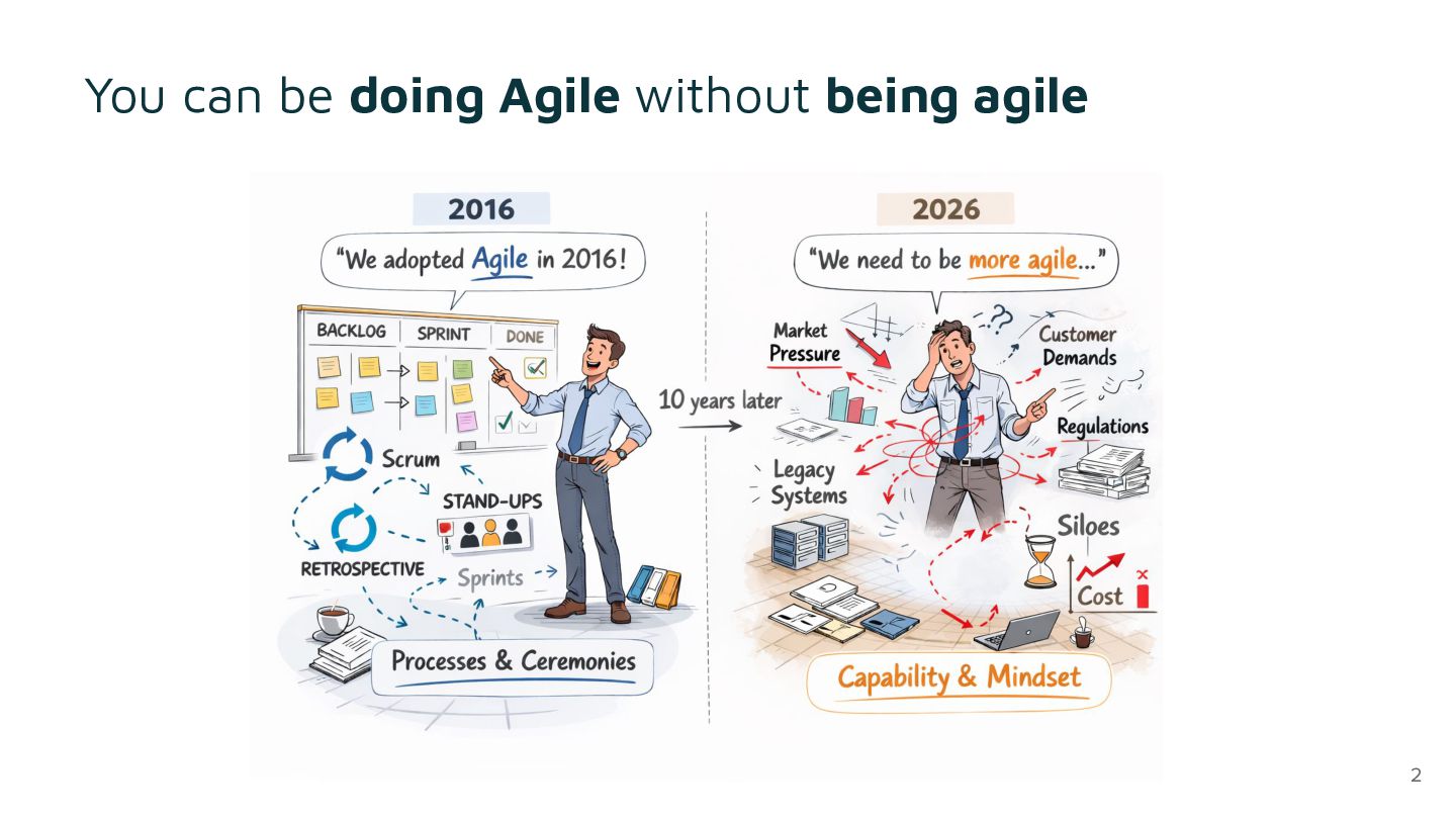 Agile has given us structures, roles, and methods to coordinate work — yet the more we scale it, the further we often drift from the very agility we seek. What will it take to have our Agile discipline and our agility too?