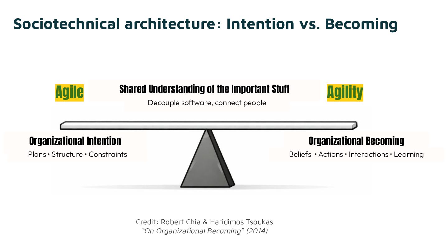 Today, technical architects and agile coaches often work apart — one shaping systems, the other shaping people. But what if their work could flow together? What if agile rituals became spaces where logic and ambiguity, predictability and emergence, the self and the whole could coalesce — where people feel seen, heard, and free to choose their agency rather than being delegated autonomy?