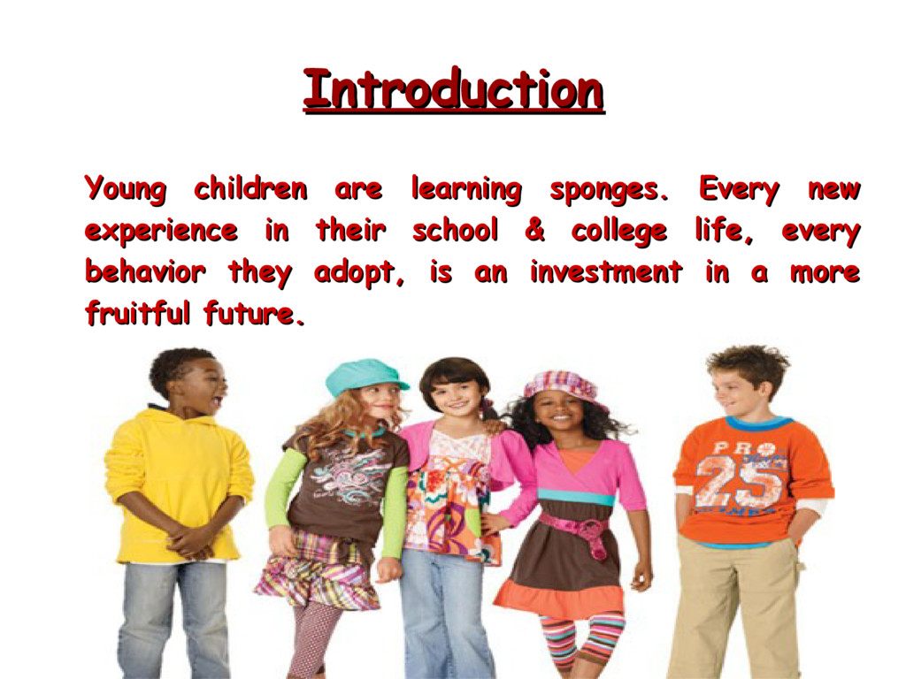 children are learning sponges. Every new experience in their school & college life, every experience in their school & college life, every behavior they adopt, is an investment in a more behavior they adopt, is an investment in a more fruitful future. fruitful future.
