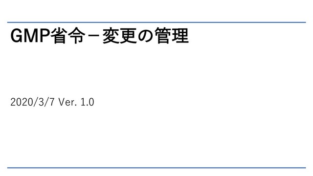 GMP省令-変更の管理 2020/3/7 Ver. 1.0
