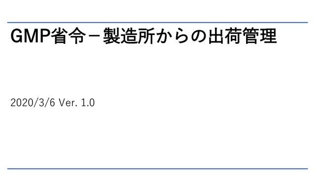GMP省令-製造所からの出荷管理 2020/3/6 Ver. 1.0